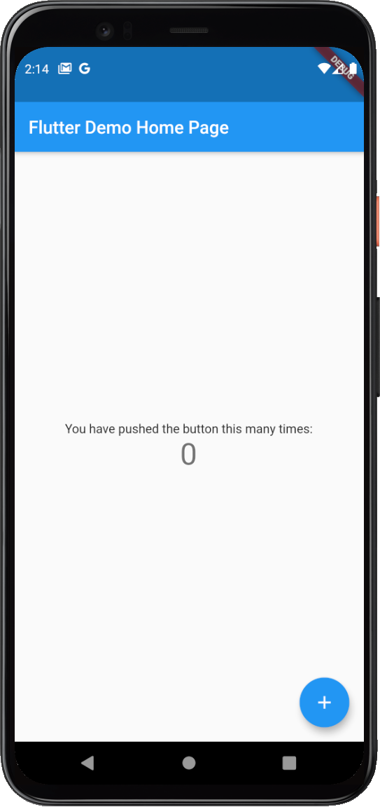 VS Code 에서 Ctrl + F5를 누르고 "Dart & Flutter" 를 고르면 에뮬레이터 혹은 연결된 기기에 설치 및 테스트가 가능하다. 패키지 생성시 기본적으로 생성되는 템플릿 코드에 의해서 + 버튼을 누르면 숫자가 올라가는 카운터 앱이 실행된다.
