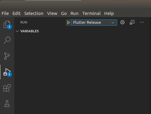 이제, VS Code 좌측의 네번째 Run 아이콘을 누르면 Flutter Release 와 Flutter 옵션을 선택할 수 있게 변경되었을 것이다. 이제 릴리즈 빌드 테스트를 하고 싶으면 Flutter Release를 선택 하면 되고, 디버그 빌드를 하려면 Flutter를 선택하면 된다.