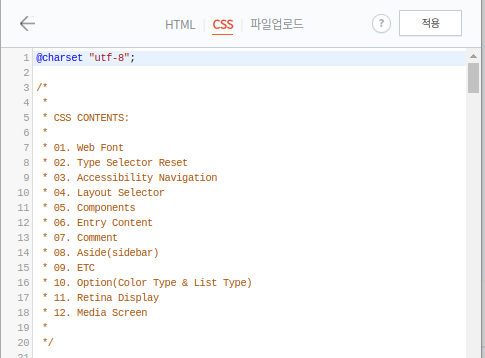 1) 관리 ->스킨 편집 -> html 편집 -> CSS 선택